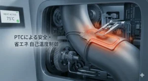 ここで注目されているのが、PTC(Positive Temperature Coefficient)ヒーターという選択肢です。日本語では「自己温度制御型ヒーター」と呼ばれます。